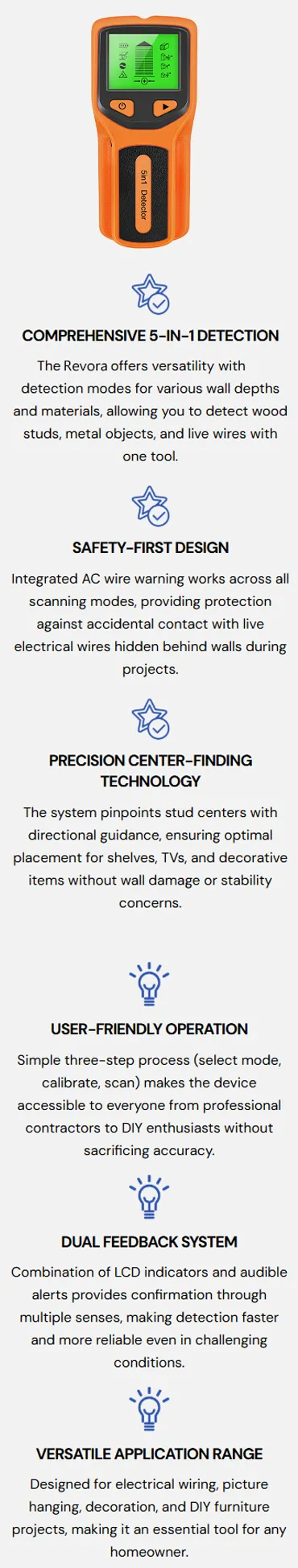 Revora 5 in 1 Accurate Stud Finder