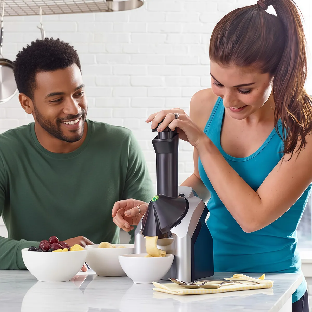 With a quick push, our innovative machine churns and transforms the frozen fruit into creamy, indulgent goodness.
